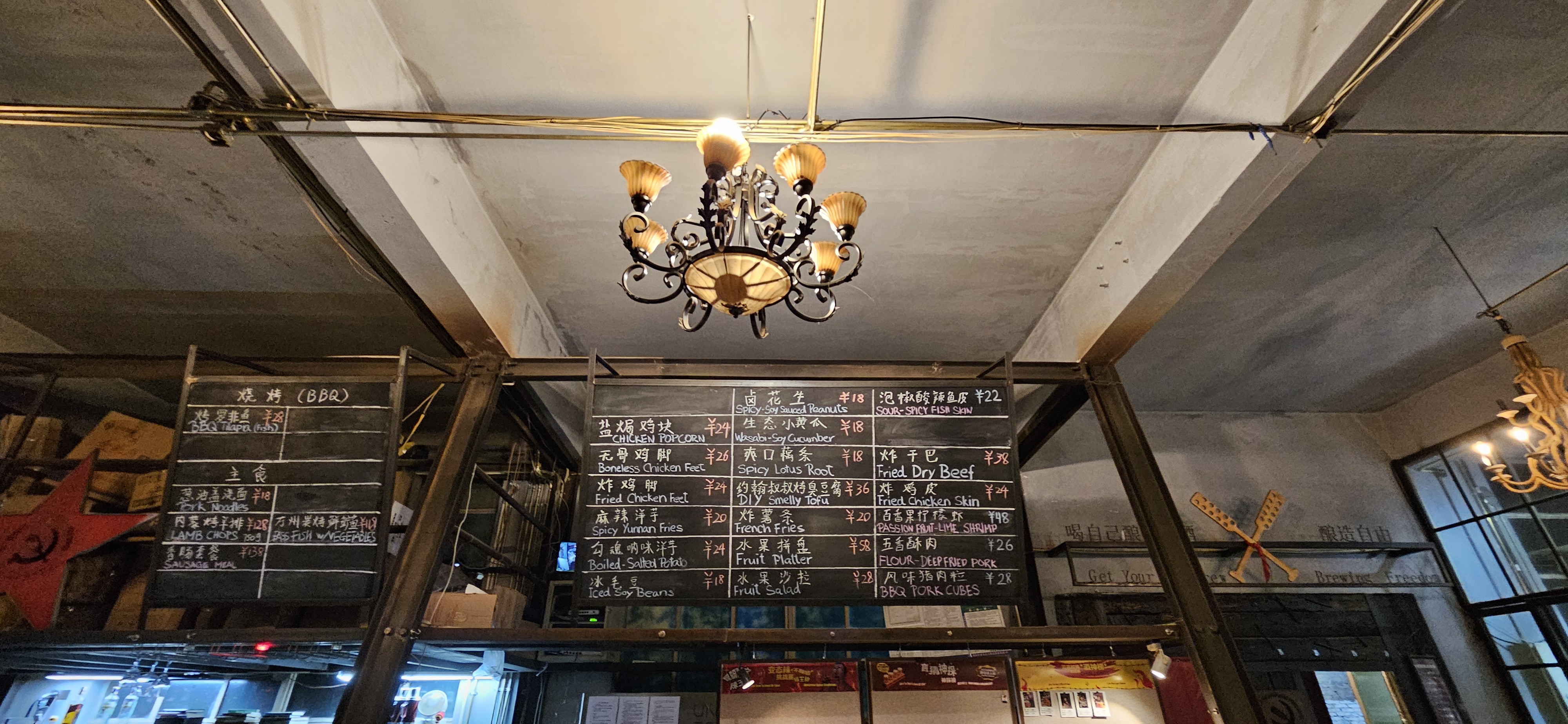 were headed for Uncle John Shushude Beer Church (or Uncle John’s), because with a name like that, how could we not? Beer culture is still growing in Kunming, and after nearly an hour, we found Uncle John’s, hidden on a side street of a side street. It was quiet and a bit creepy when we arrived, as we were expecting some kind of crowd and some music. After reviewing the menu board, we attempted to order.