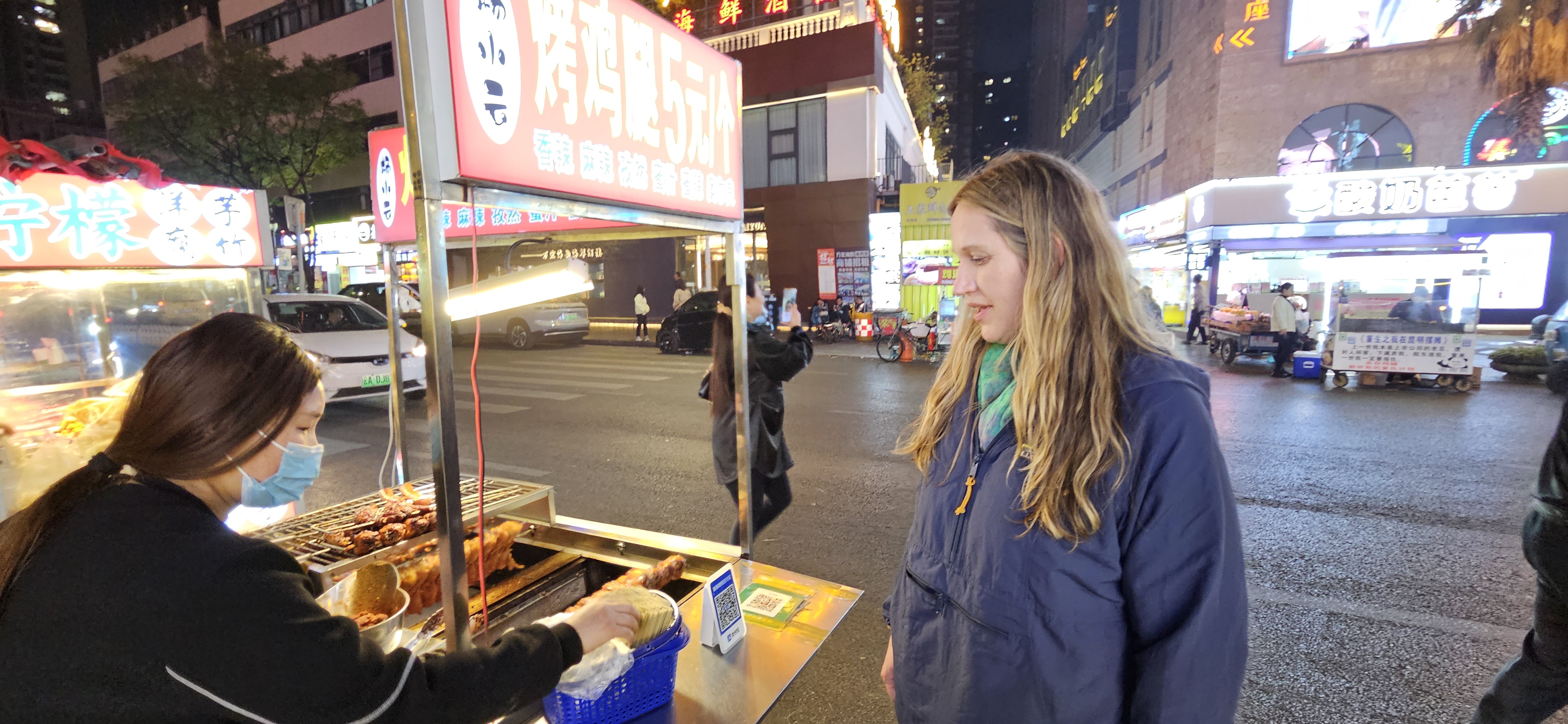 We were still hungry, and saw a night market (the Wanhong Night Market) not too far, so made a beeline to it for late night snacks. I’ve mentioned the night markets at each of the cities we visited, and each city has so many, and they are all at least, a little different. This one was very bright and colorful, and we arrived toward the end of the night (usually they start to quiet down around 11pm and close around midnight, give-or-take), so there were some vendors already packed up, and we saw a few of the workers playing some street badminton and laughing as we ate.