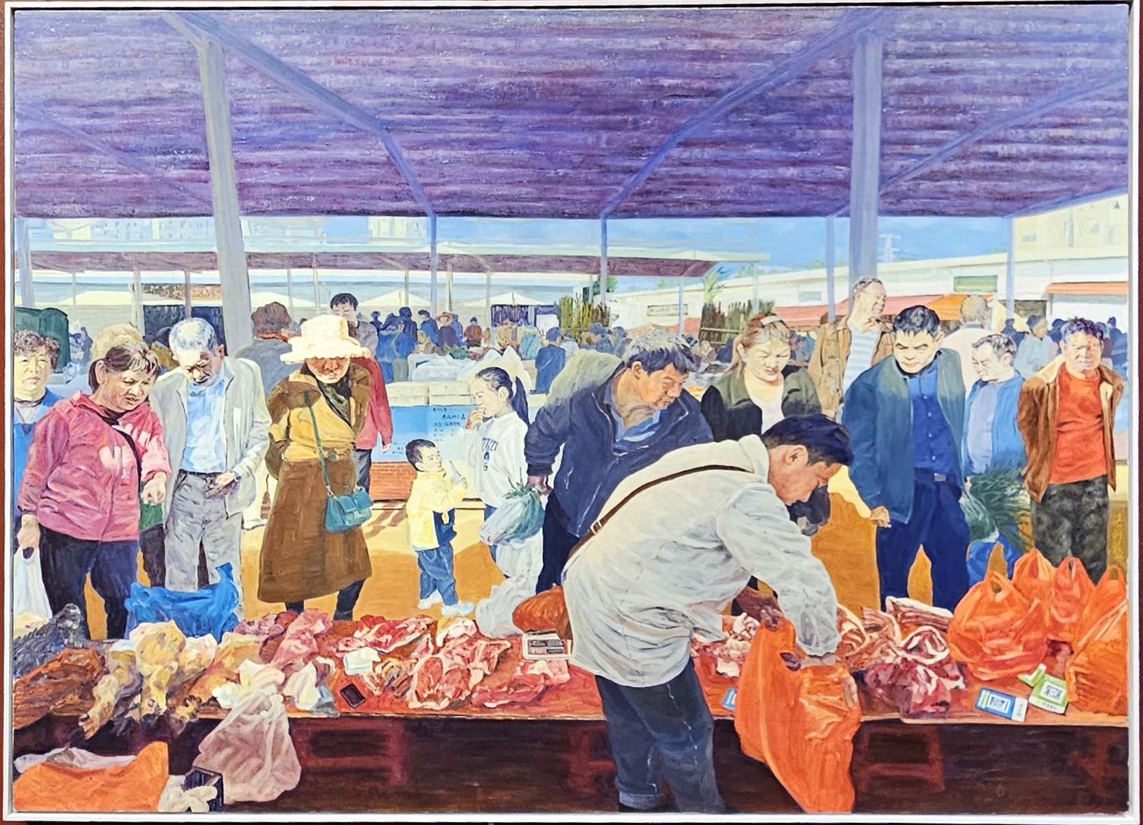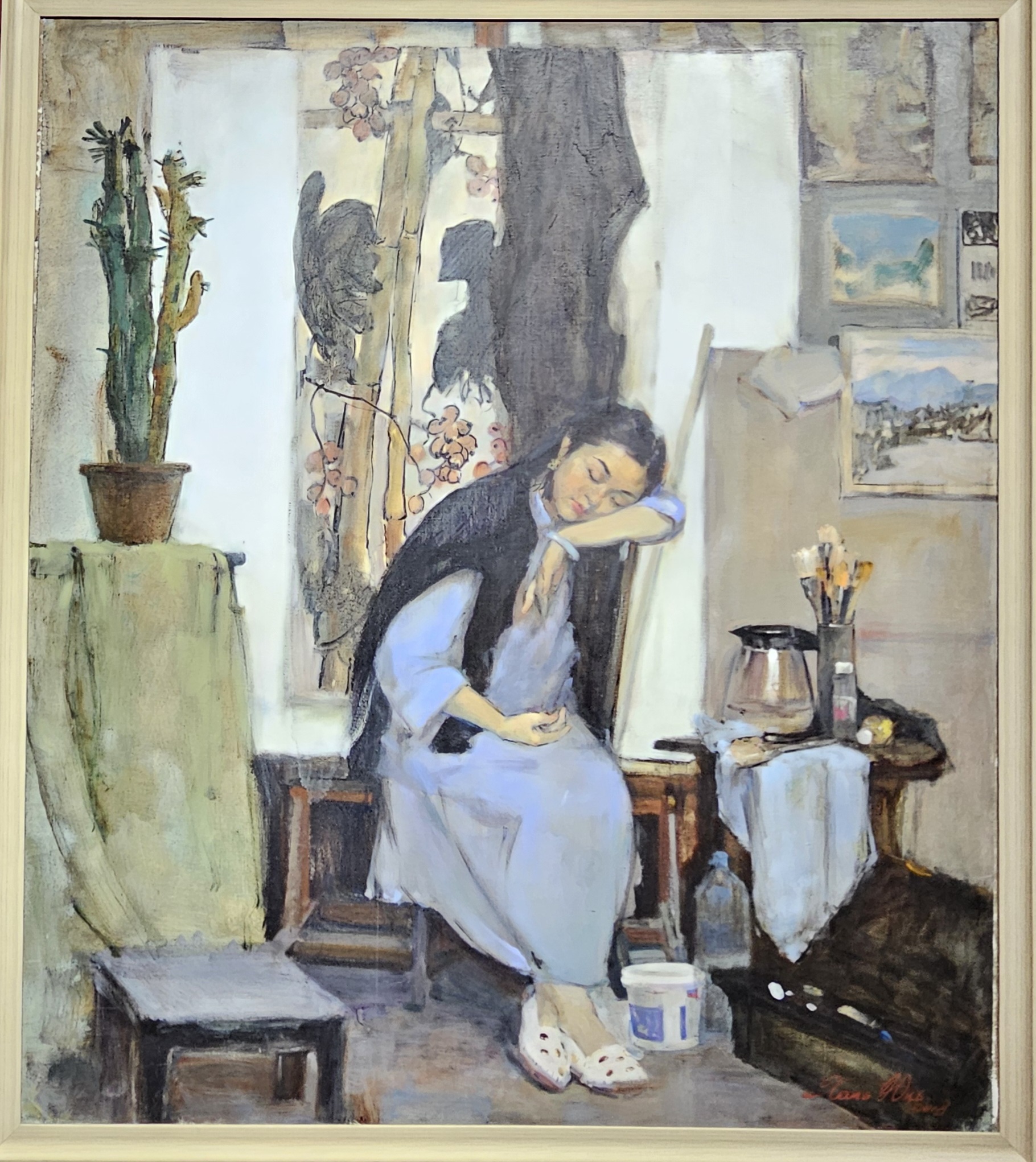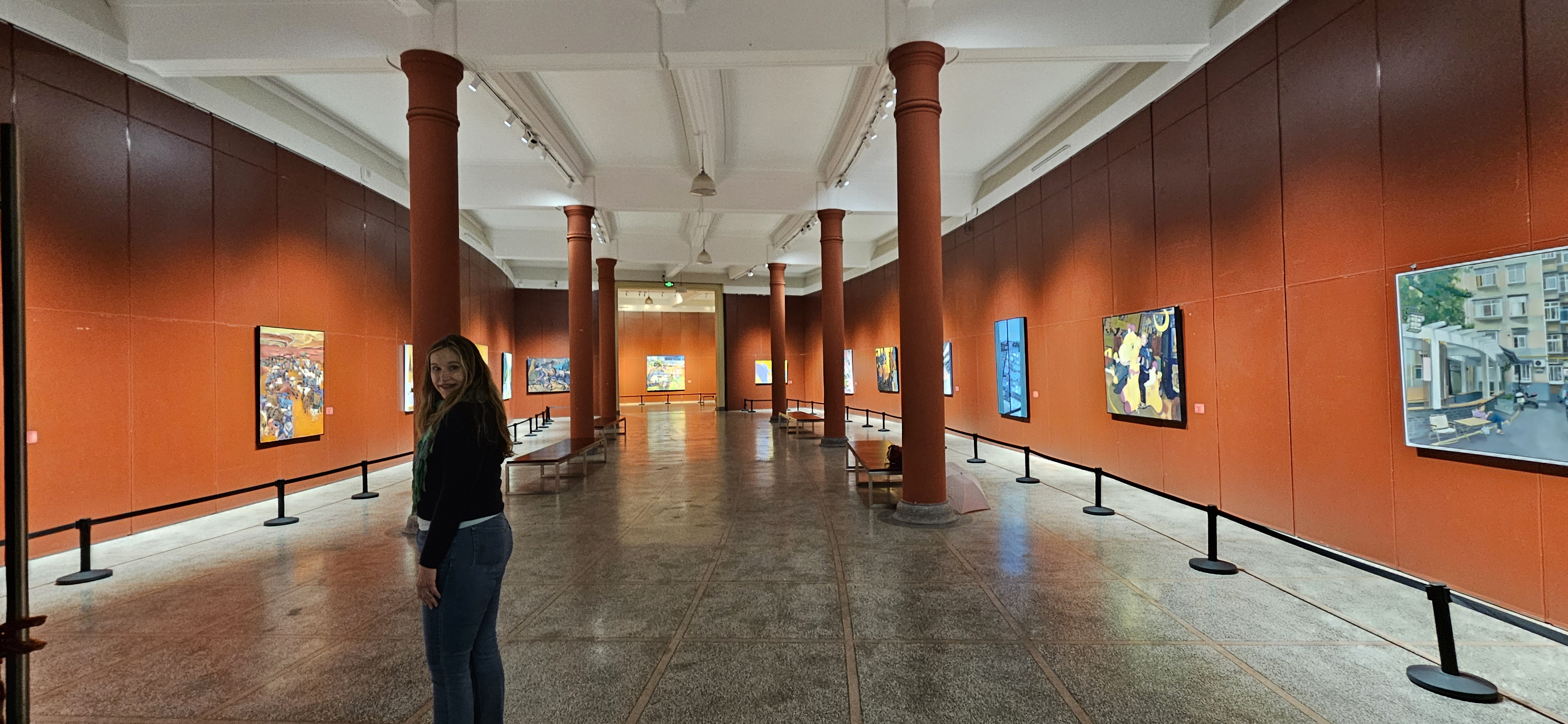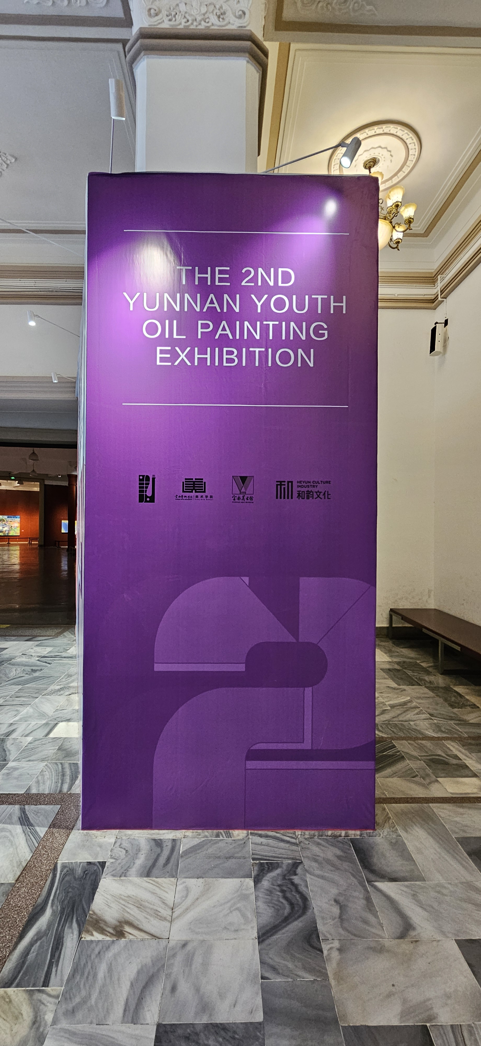 There was no fee and we entered inside. The walls were painted red, and we saw the poster letting us know that the temporary exhibit this time was the 2nd annual Yunnan Youth Oil Painting Exhibition. I love oil paintings, and find that they are becoming rarer and rarer to see in art museums or galleries, as much of art has chosen to use a variety of mixed media as the medium.