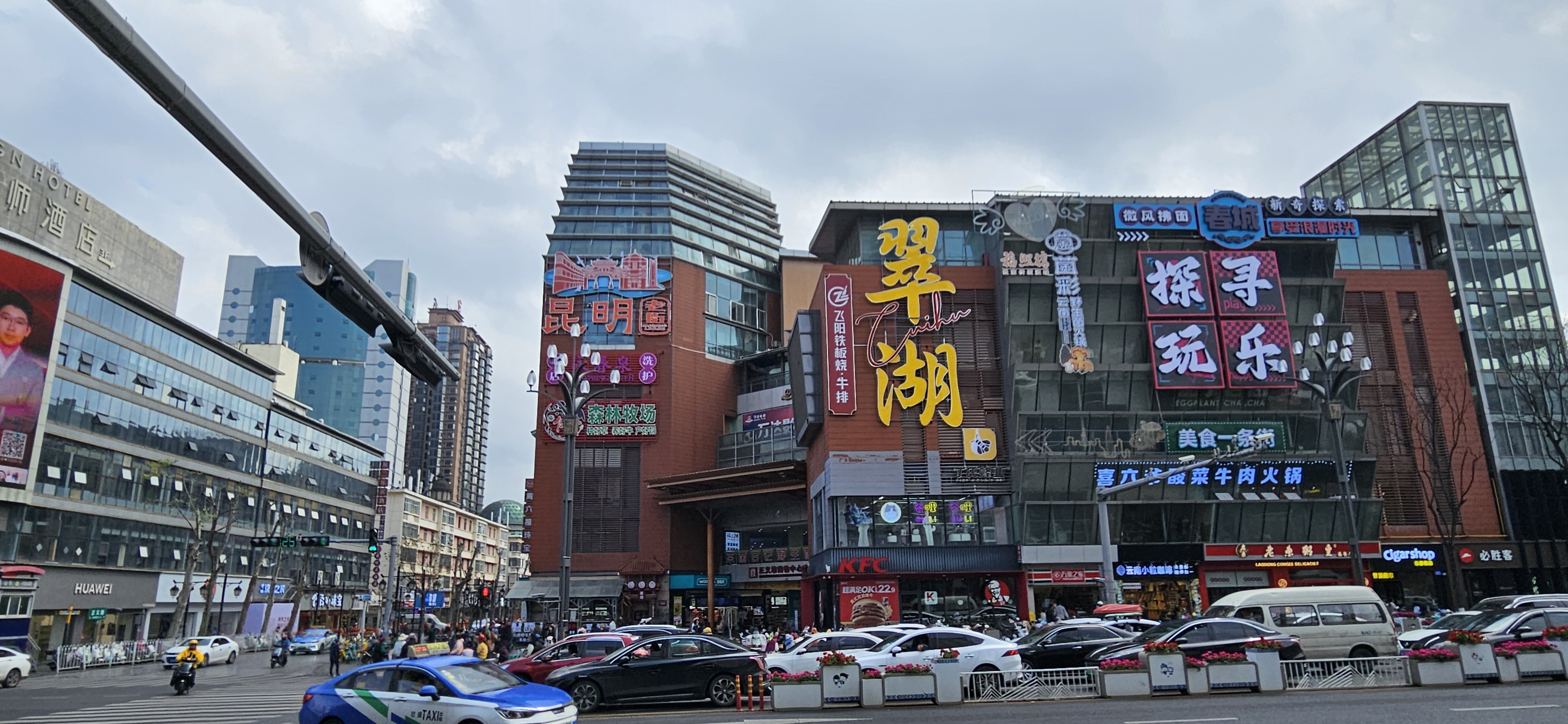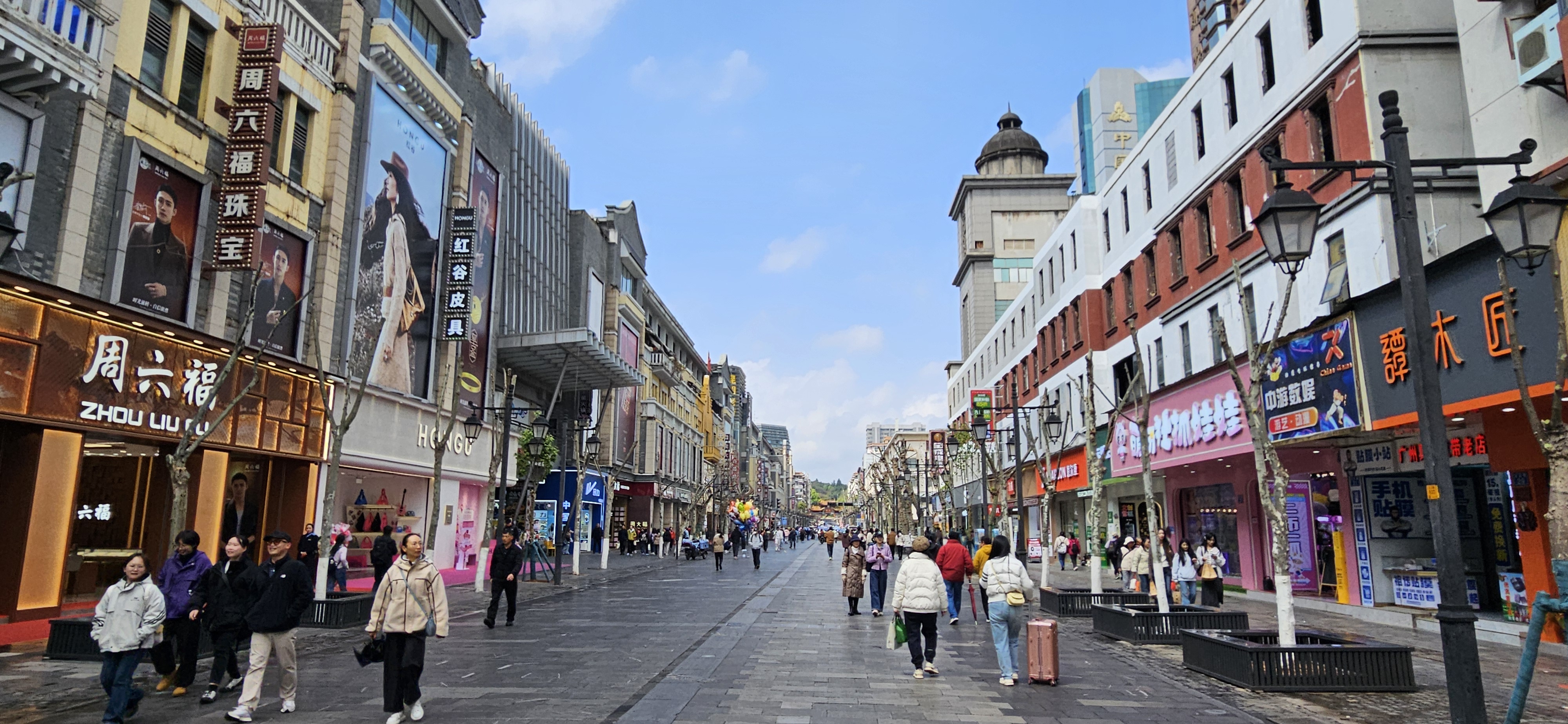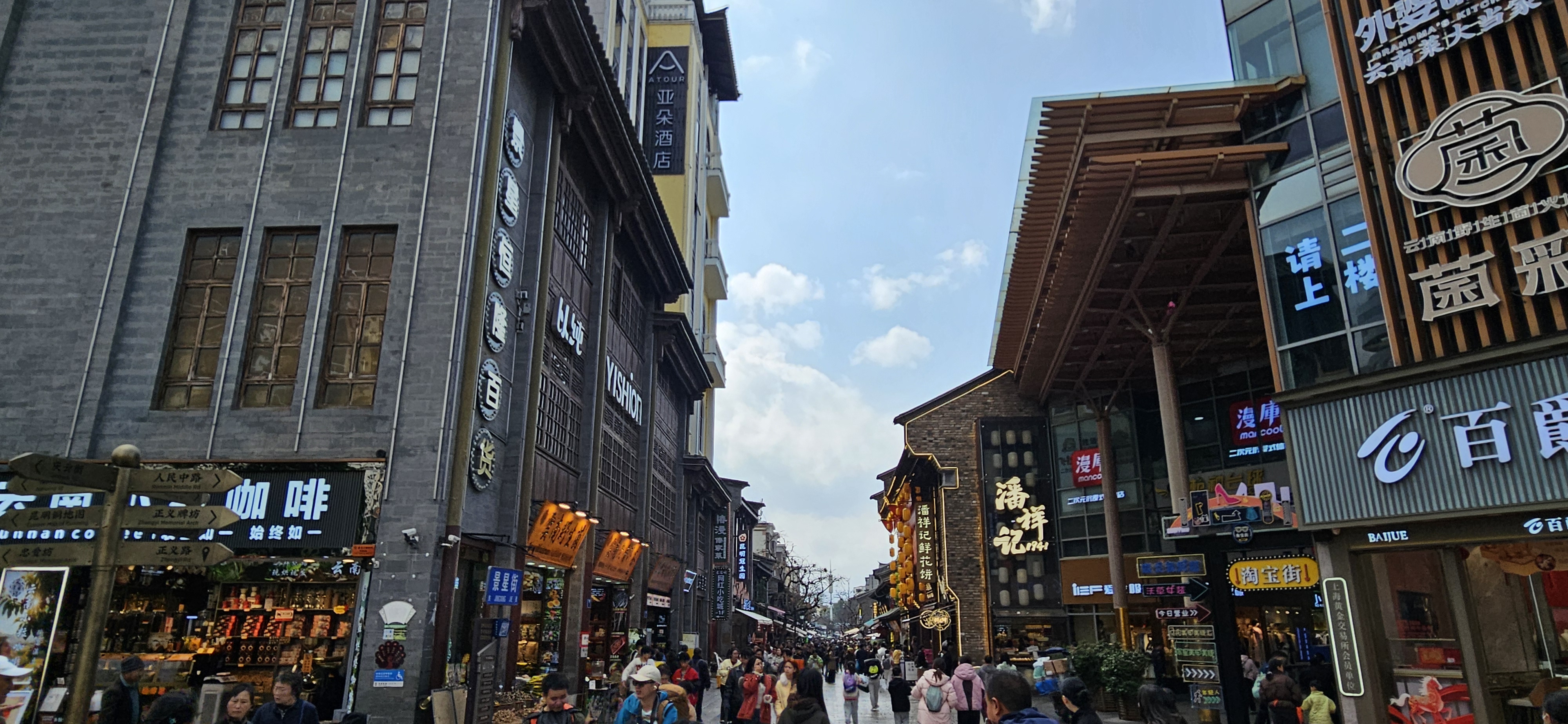 After we left the museum, blue skies parted the the grey clouds, and we wandered some more, finding ourselves on Nanping Pedestrian Street, which fed into Old Street Kunming, a wide thoroughfare with a lot of shopping, food stalls, and electric bikes whizzing by.