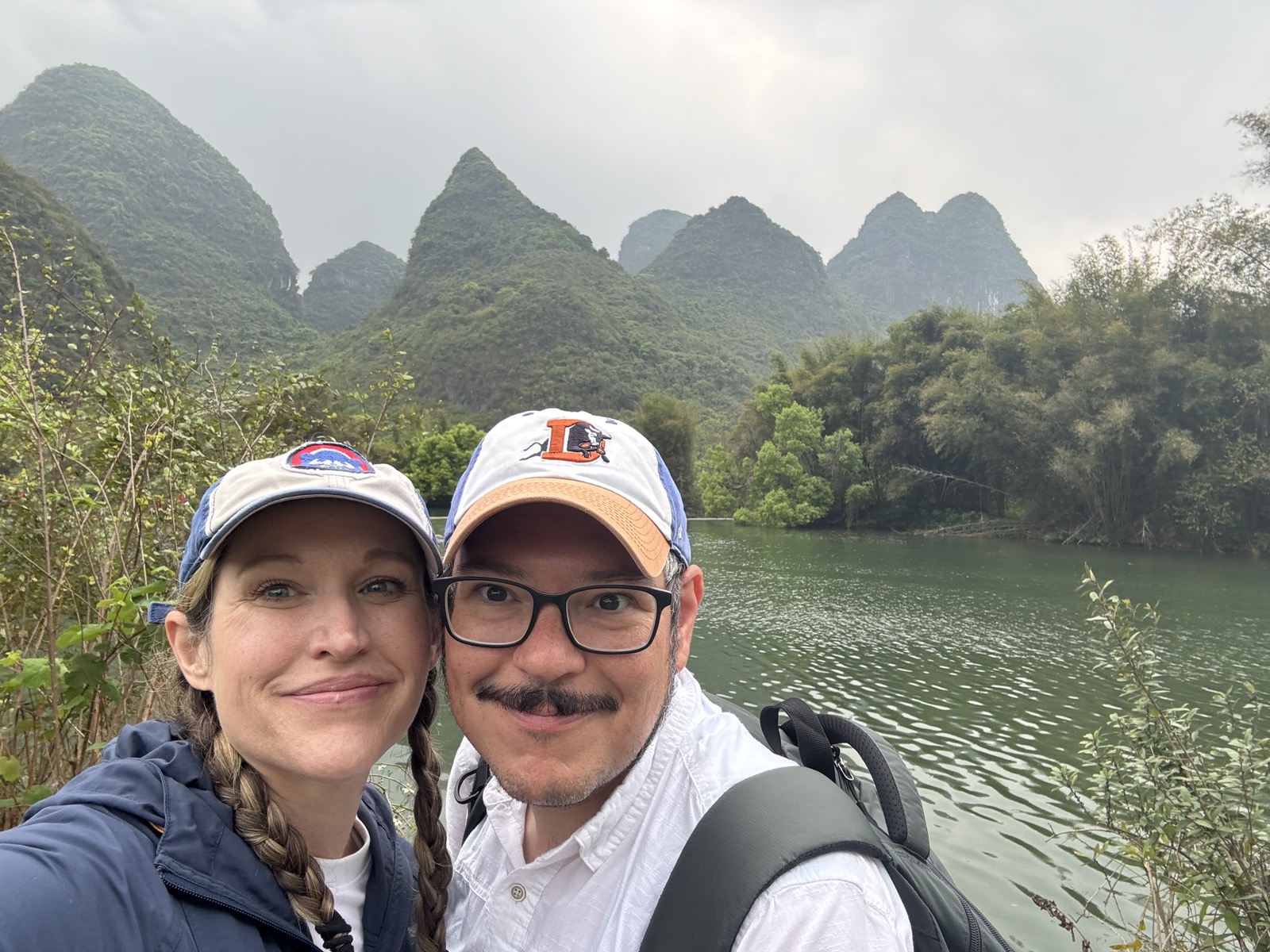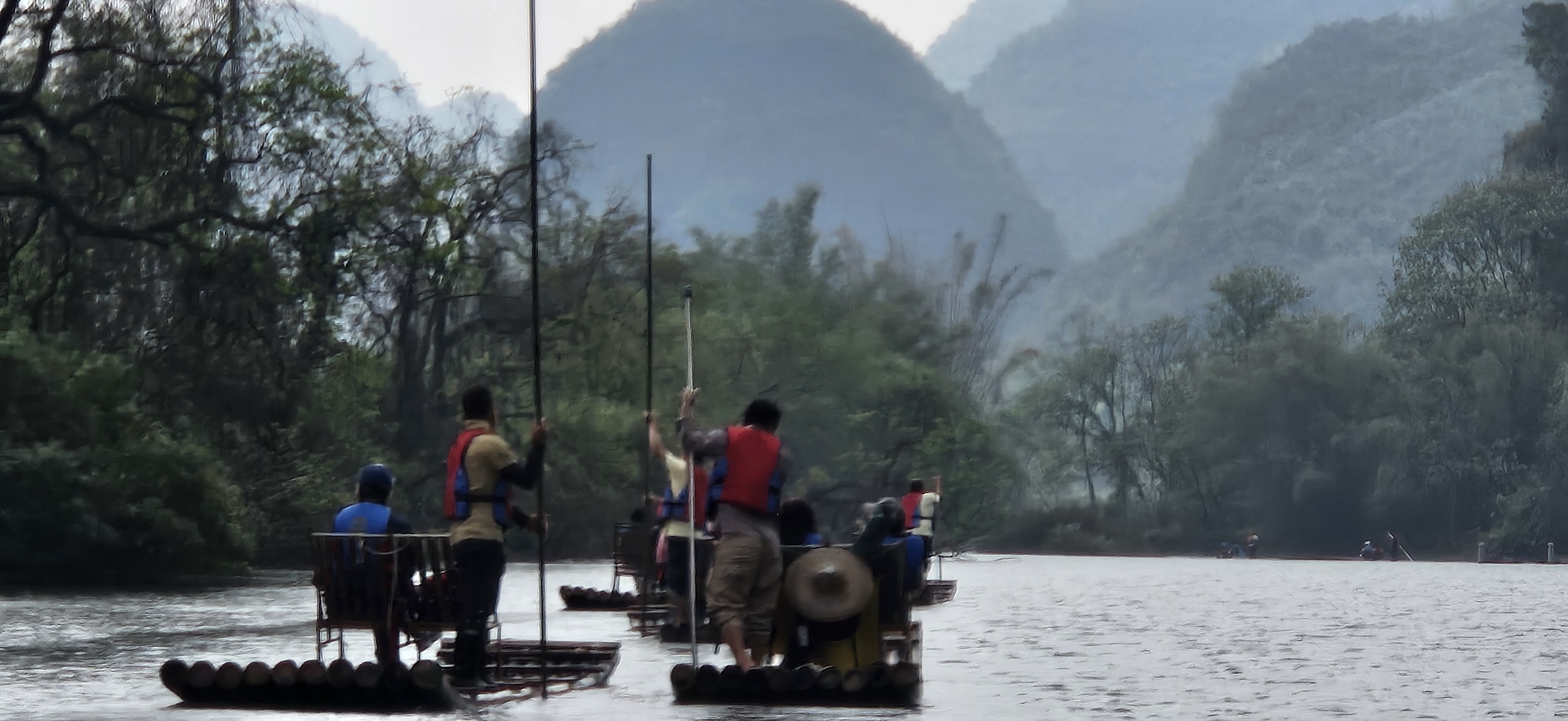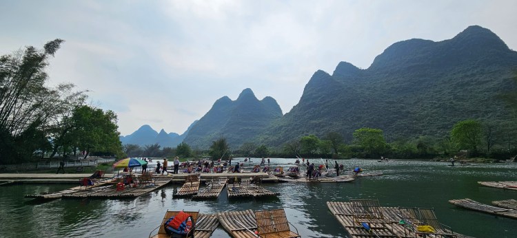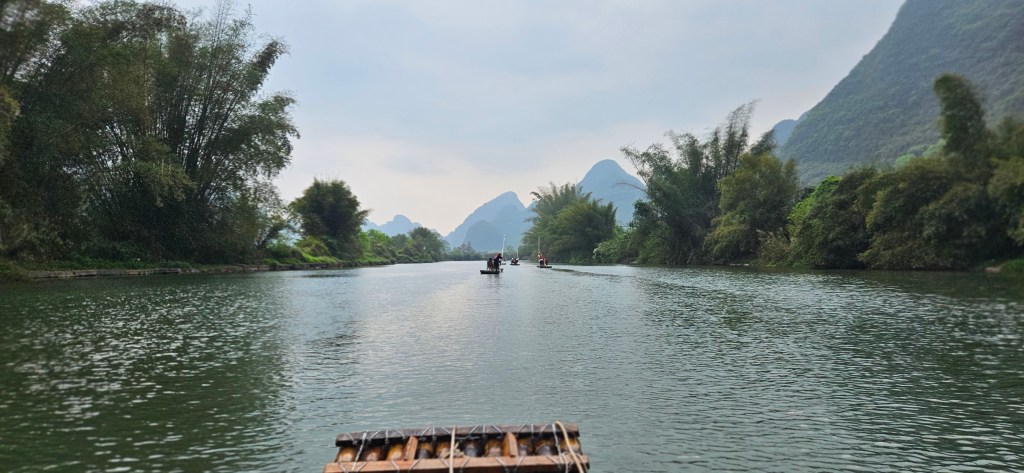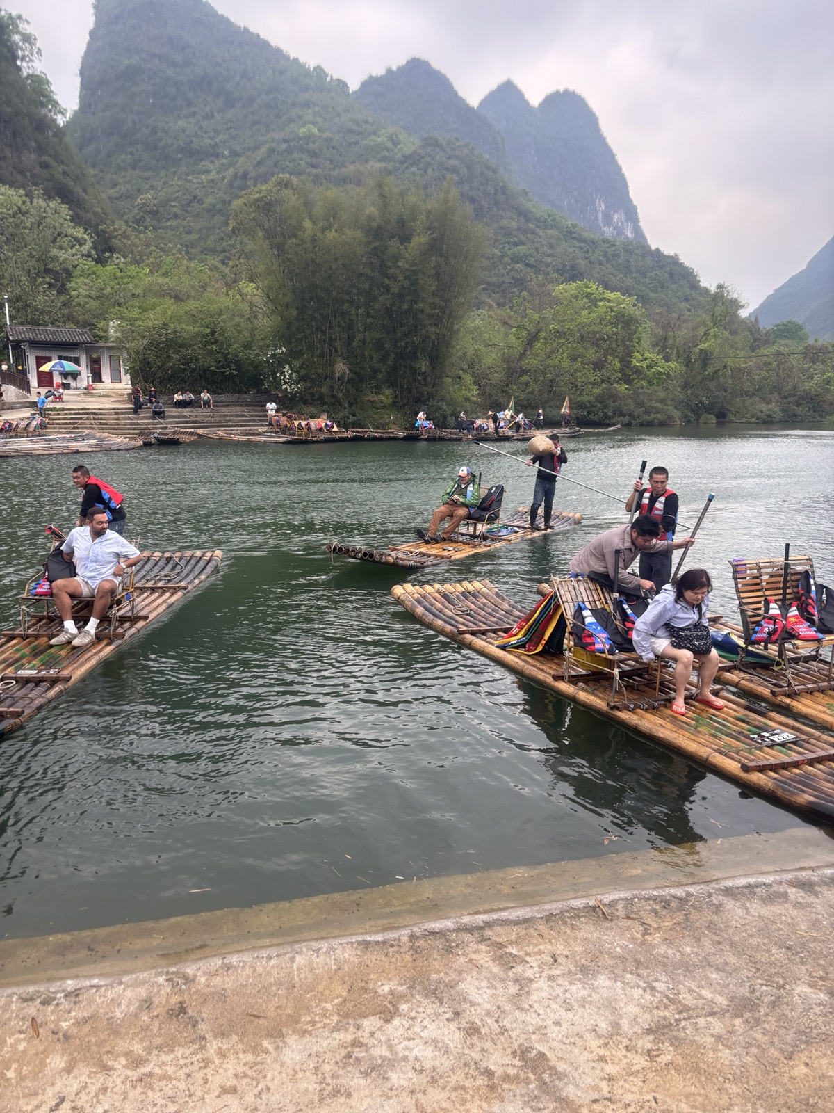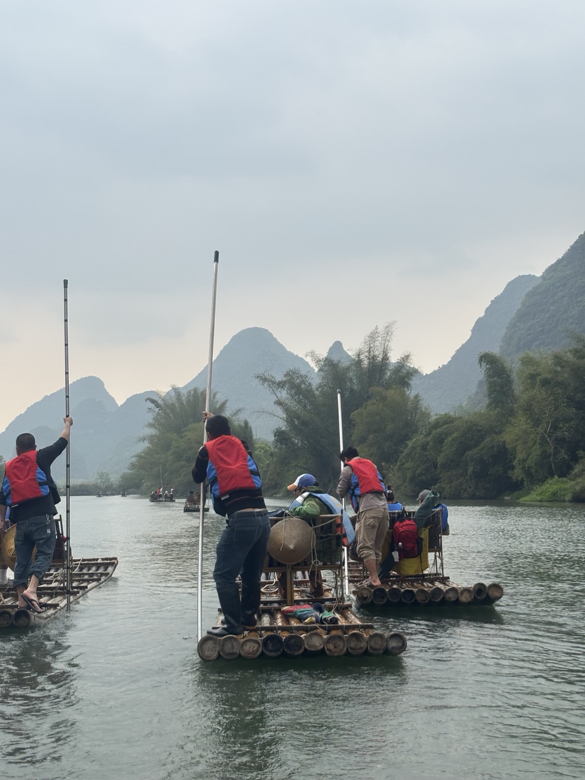The Yulong River ran parallel to the road in front of our hotel. Something we had seen in many videos about Yangshou was taking a bamboo raft down the river, as it is so known in China it is even pictured on the back of the 20 Yuan Note (it looks so peaceful and serene, doesn’t it?).