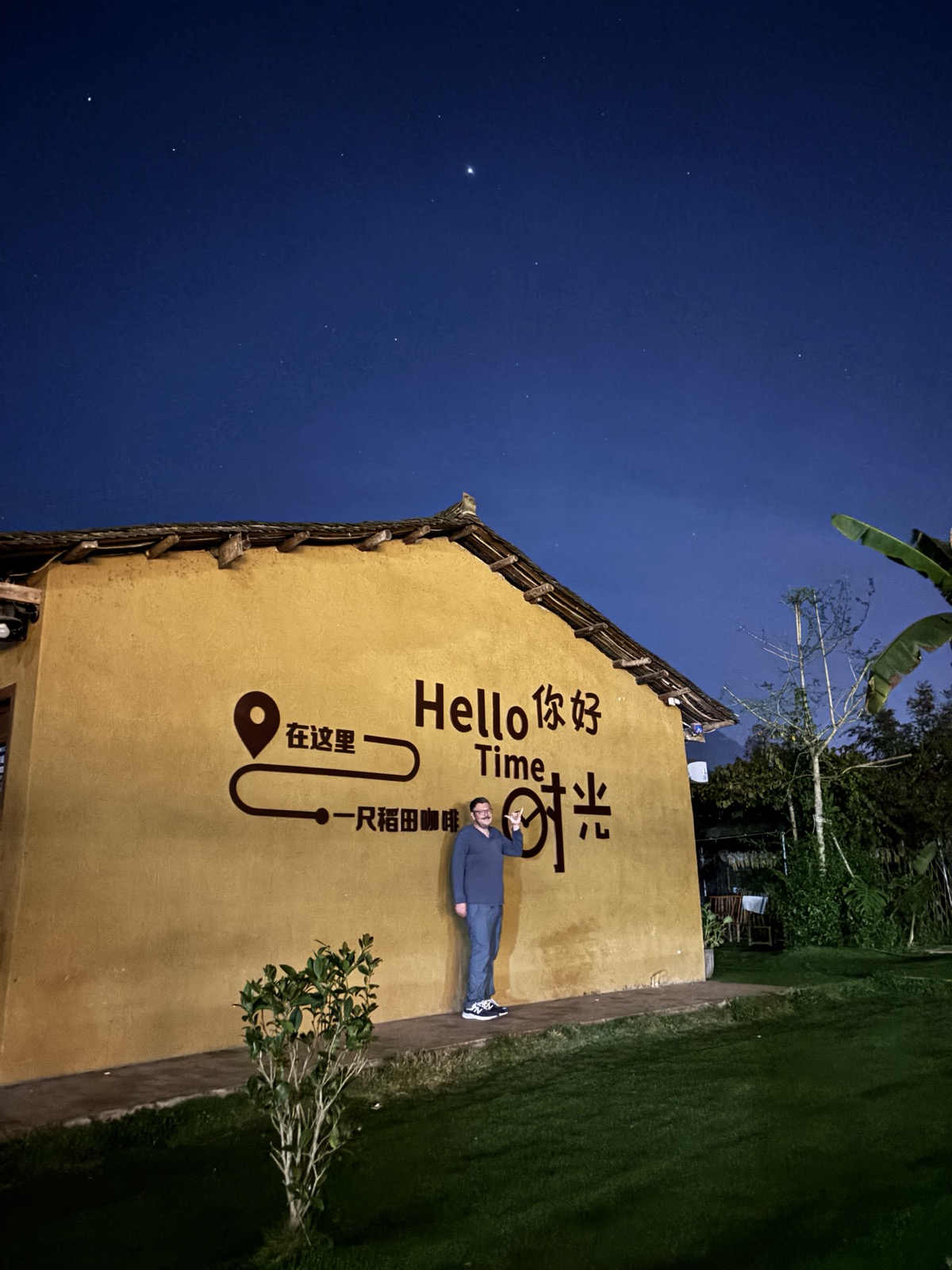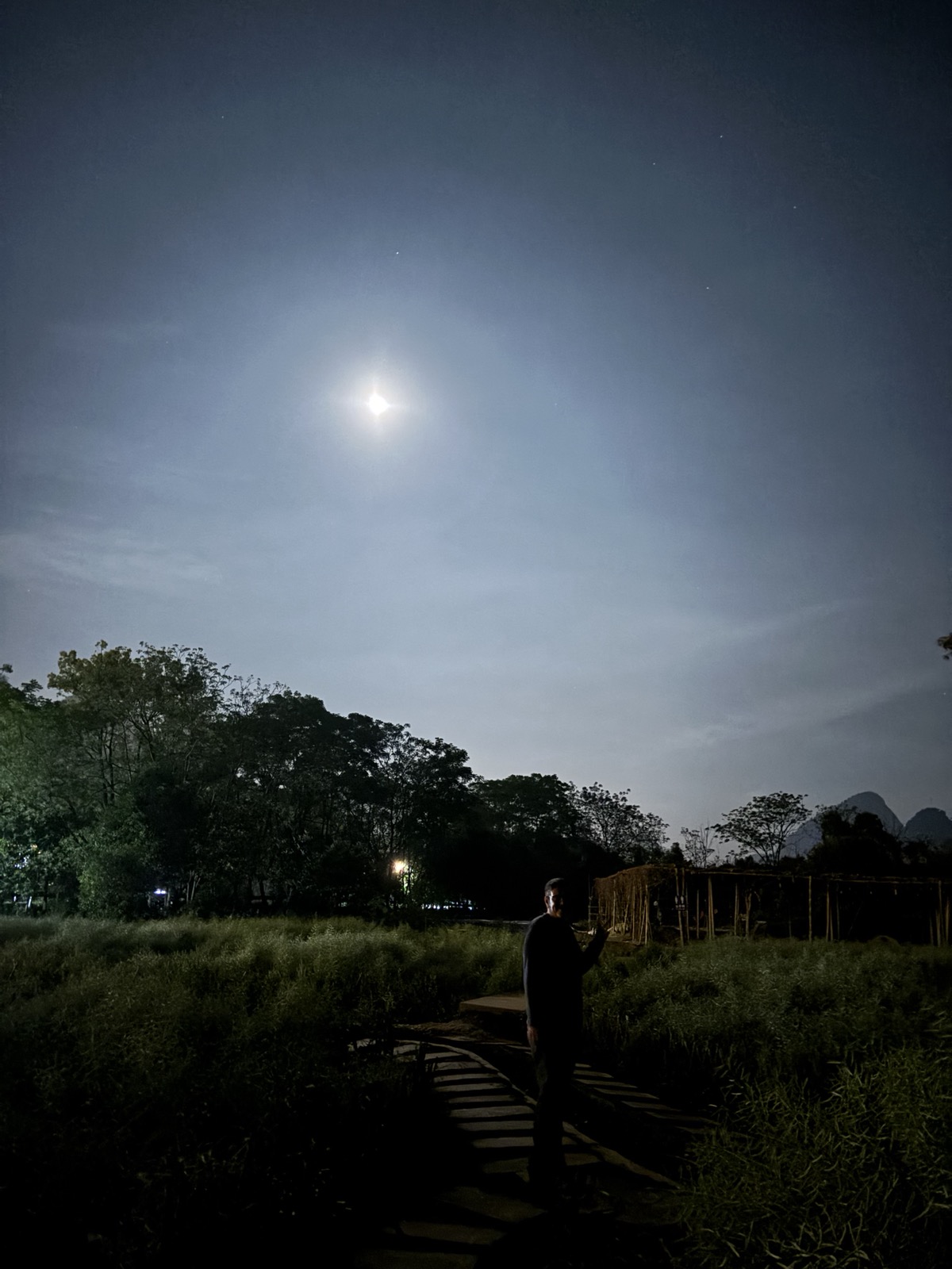 I now have my social media picture at the “Hello Time” building (yay?), and we were able to enjoy the night sky and scenery under a full moon.