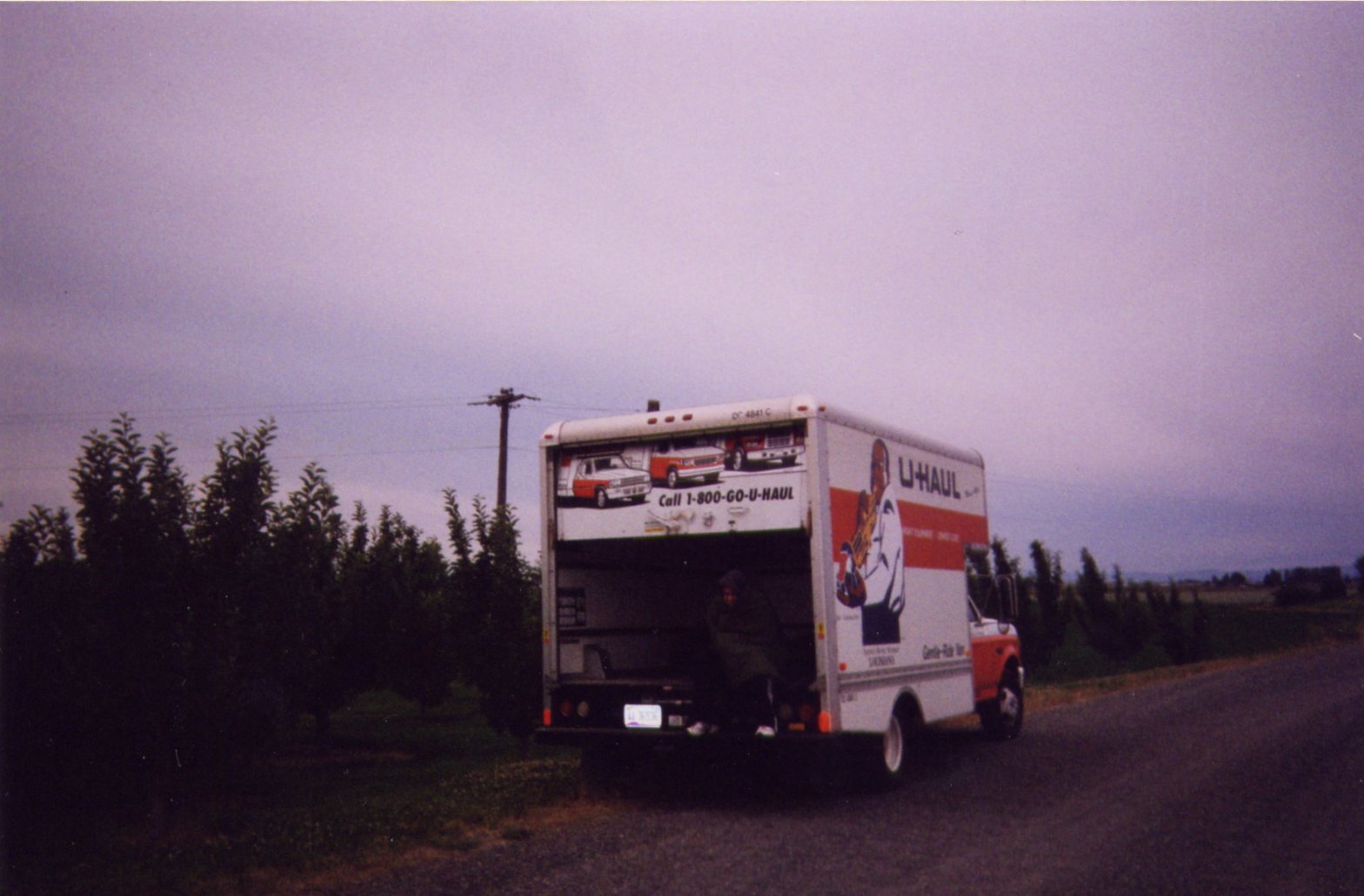 Me, in the back of a Uhaul, after having slept in the back next to an Apple Orchard near the Gorge in George, WA after a Radiohead show in the early 2000s